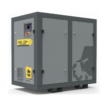 Винтовой компрессор ДЭН-15Ш ОПТИМ представляет собой законченный и готовый к эксплуатации блок, скомпонованный на общей раме, не требующей специального фундамента, снабженный звукоизолирующим кожухом и системой автоматизации. Основным узлом компрессора является винтовой компрессор фирмы ROTORCOMP (Германия), срок наработки которого 40 000 часов без замены подшипников и 80 000 часов до капитального ремонта. Основное назначение компрессора снабжение пневмосистем промышленных предприятий сжатым воздухом при температуре окружающей среды от +1 °С до +35 °С. Компрессоры ДЭН серии ОПТИМ оснащены автоматической системой регулировки частоты вращения электродвигателя.